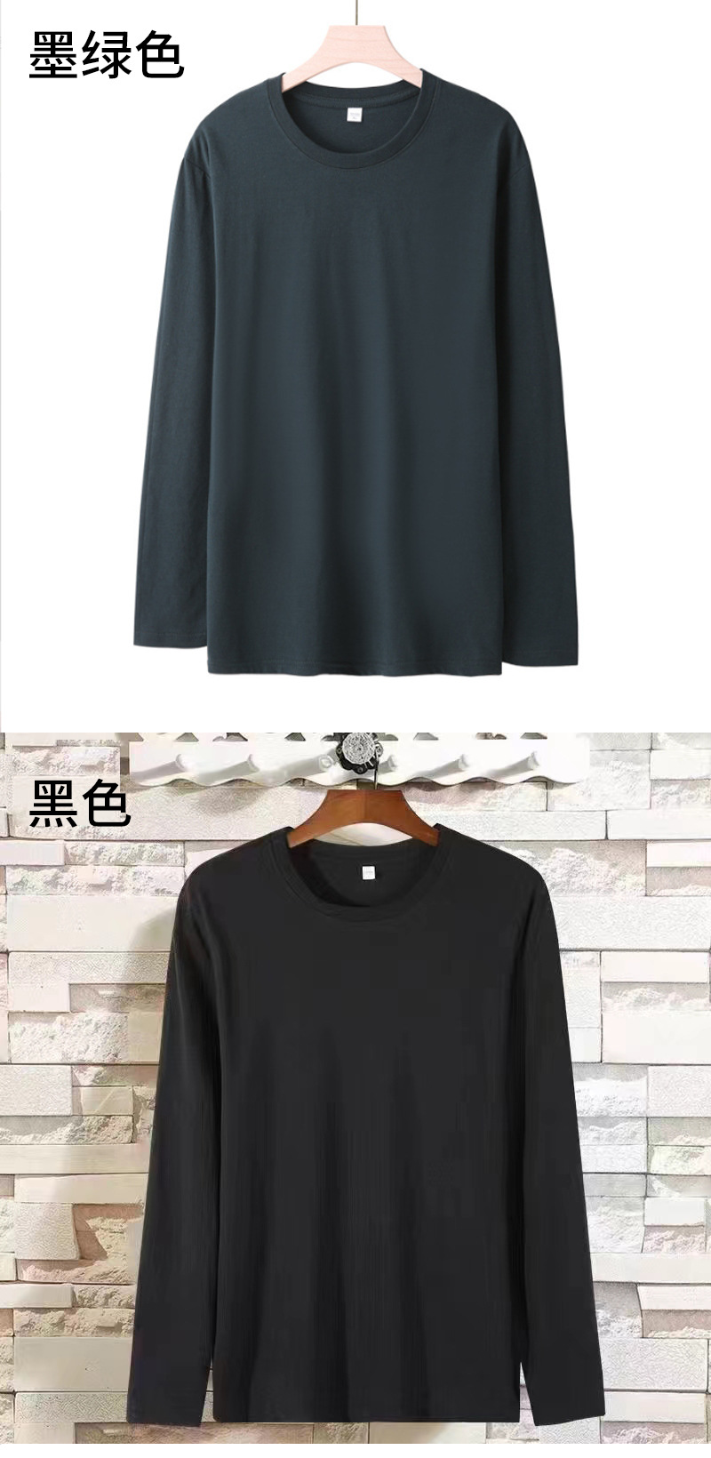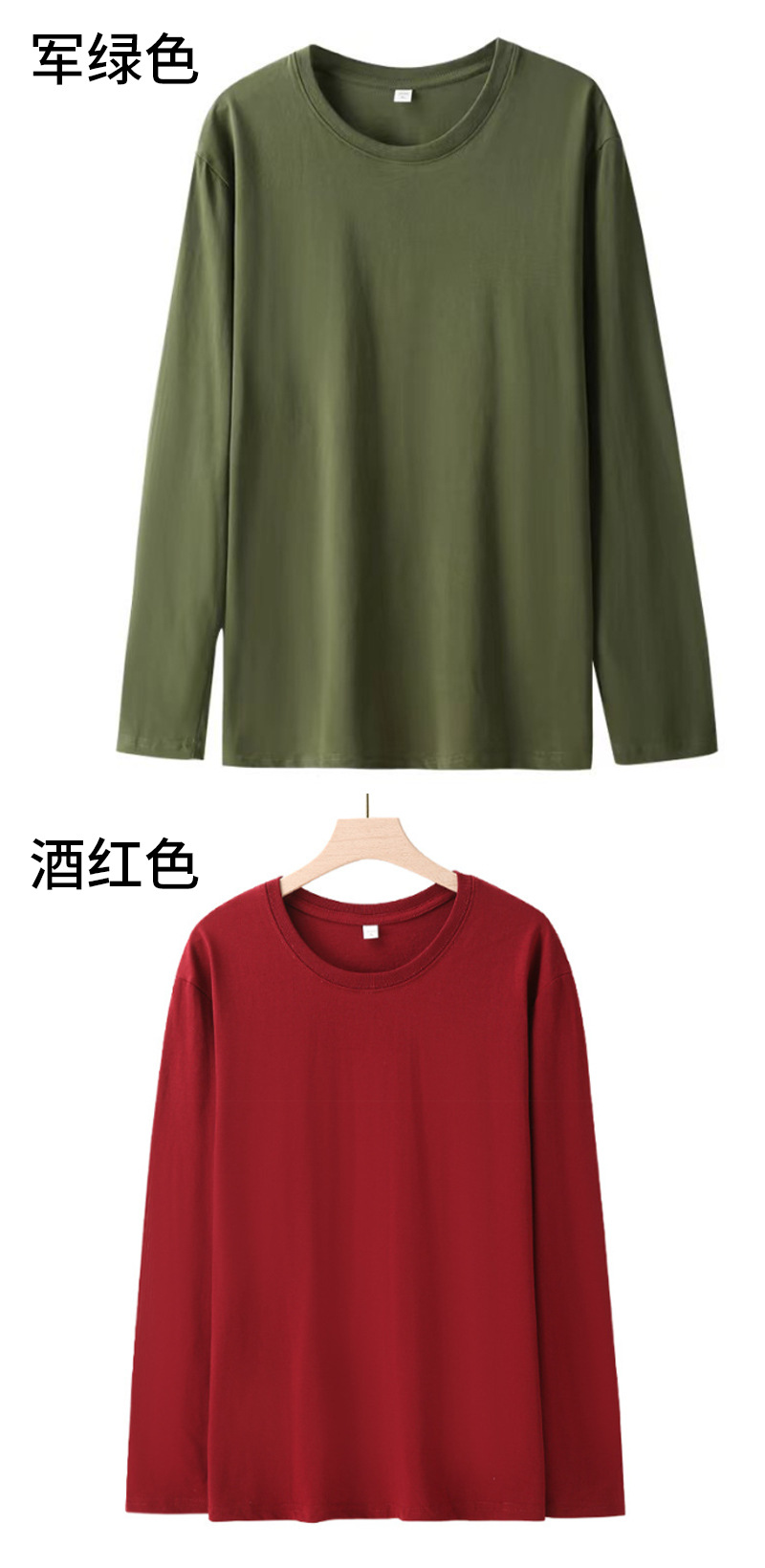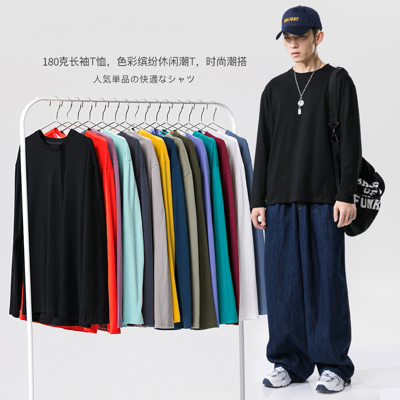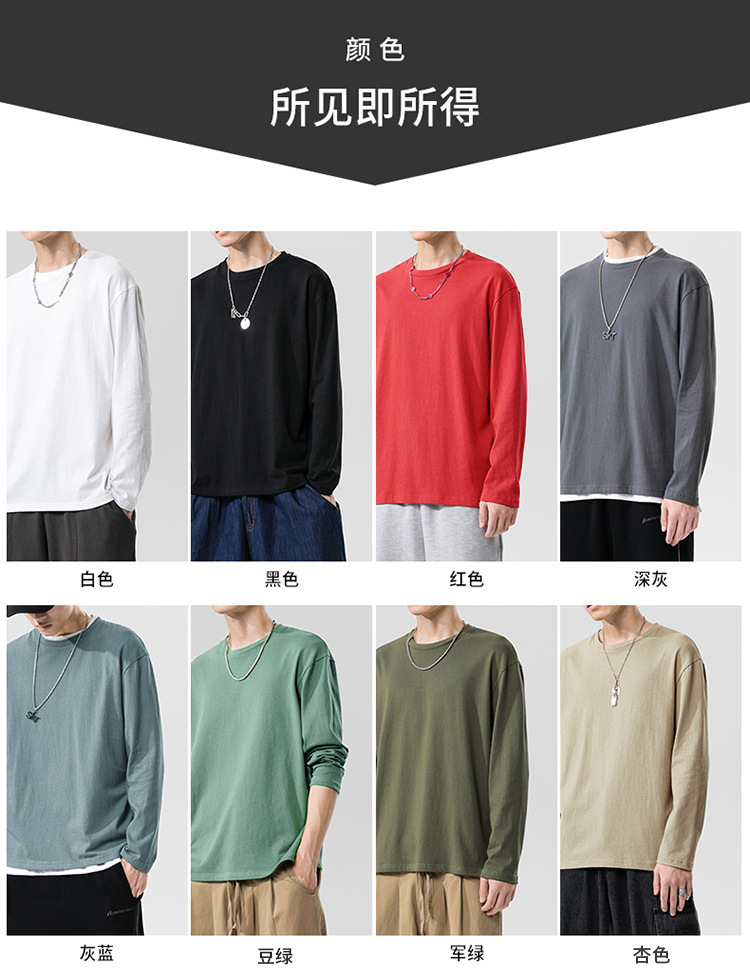 男士长袖T恤宽松180克精梳棉圆领袖纯色t恤男装内搭长袖上衣
