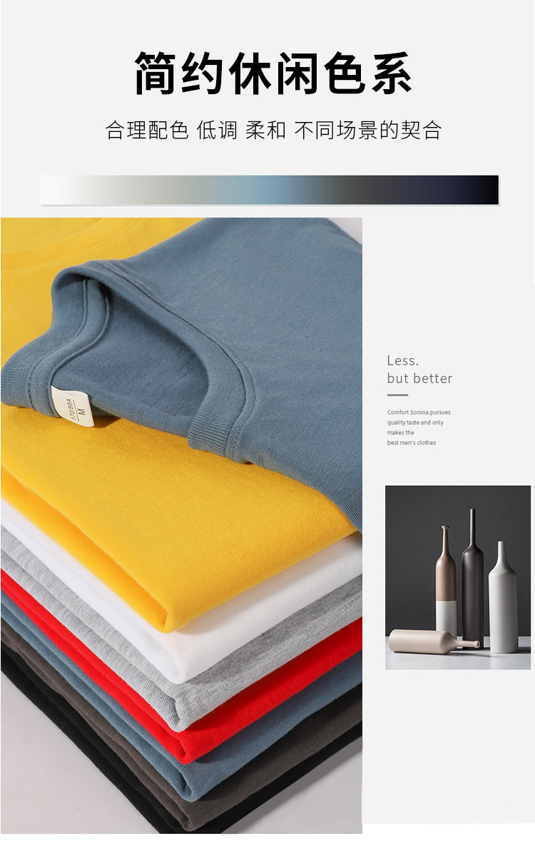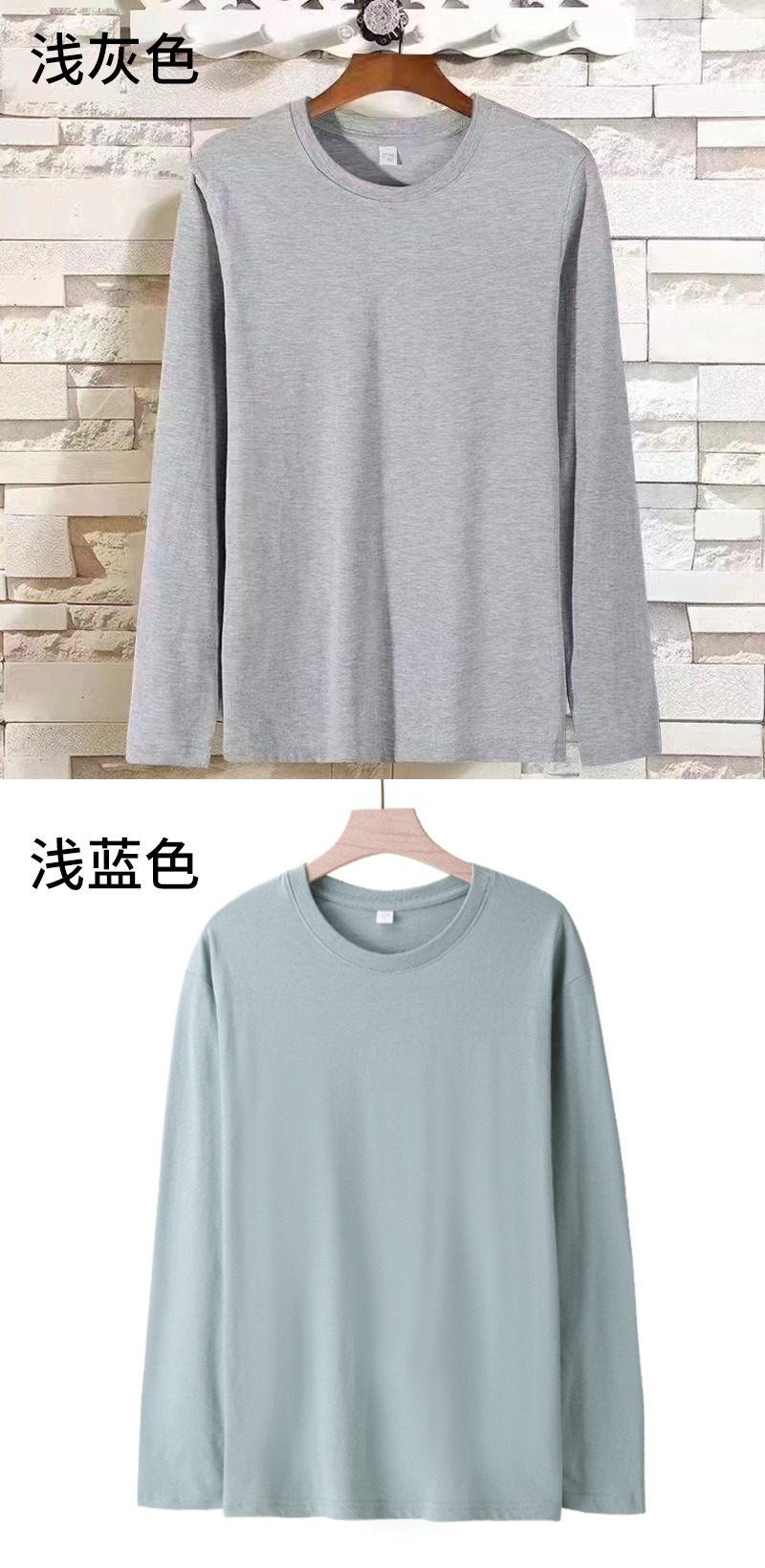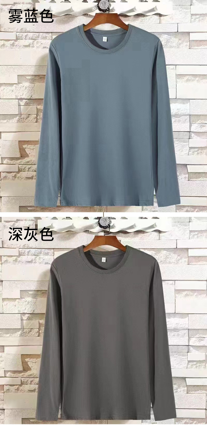 男士长袖T恤宽松180克精梳棉圆领袖纯色t恤男装内搭长袖上衣