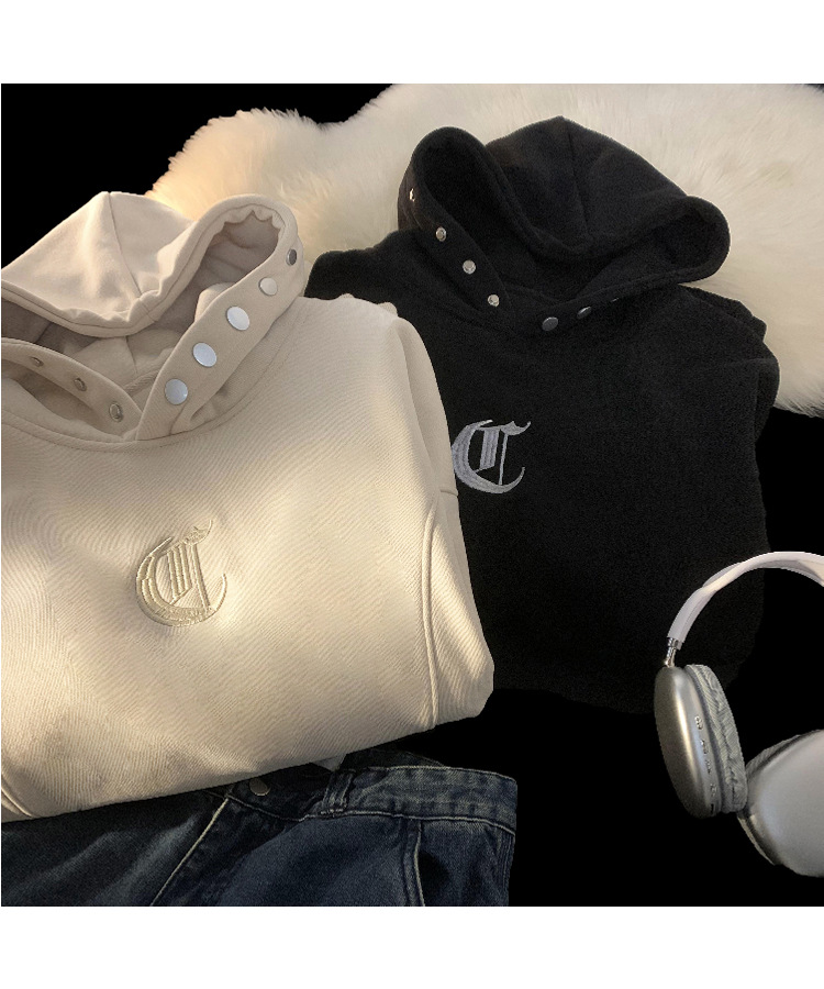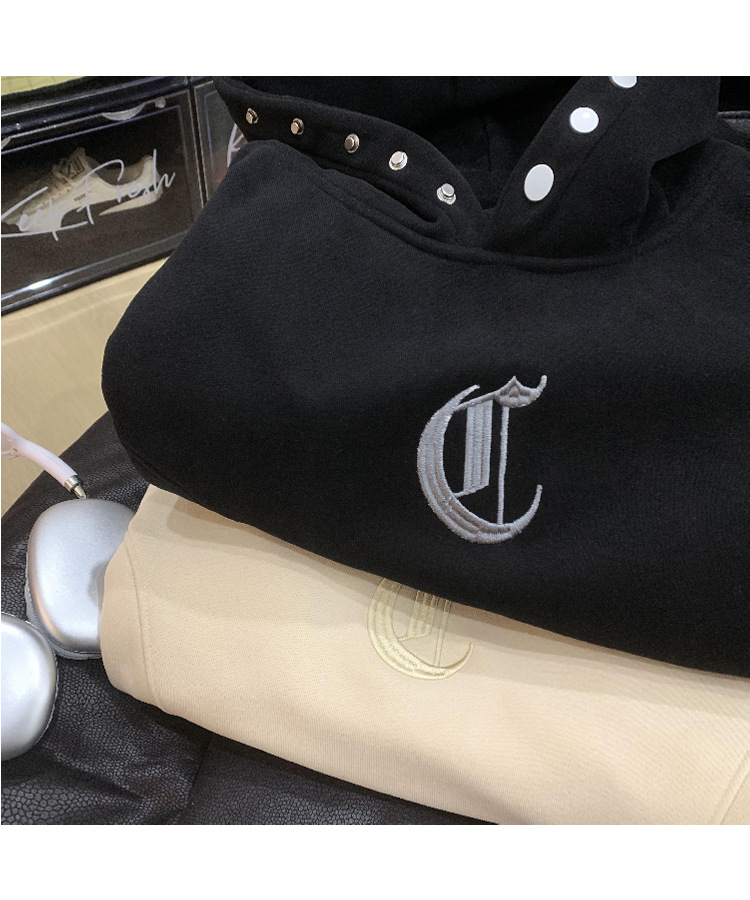 ATN男装|新品字母刺绣加绒加厚男生连帽卫衣潮牌帽衫学院