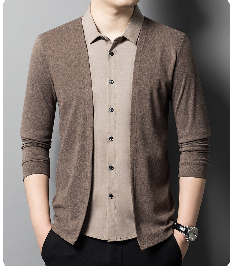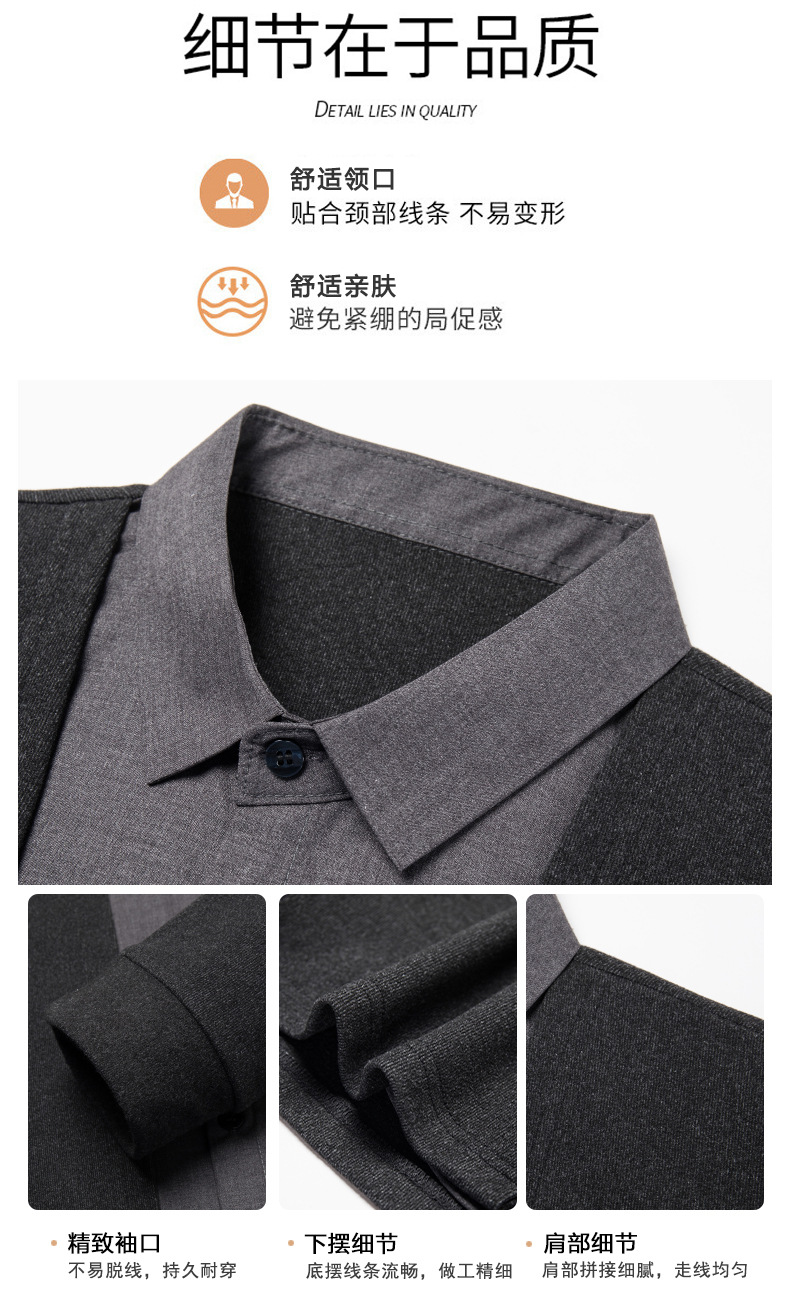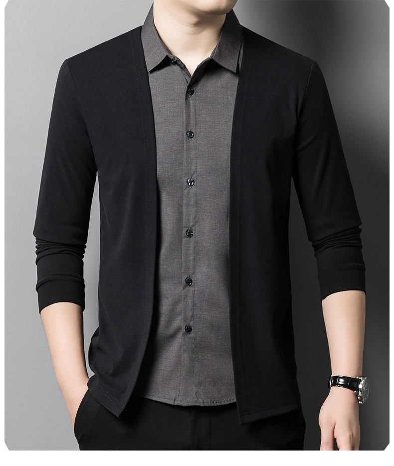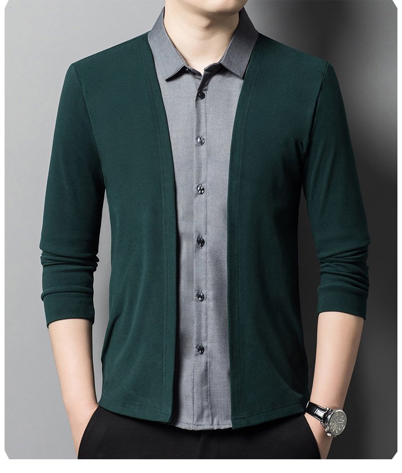 新款中青年男士长袖衬衫假两件开衫休闲发热双面德绒高弹潮流男装