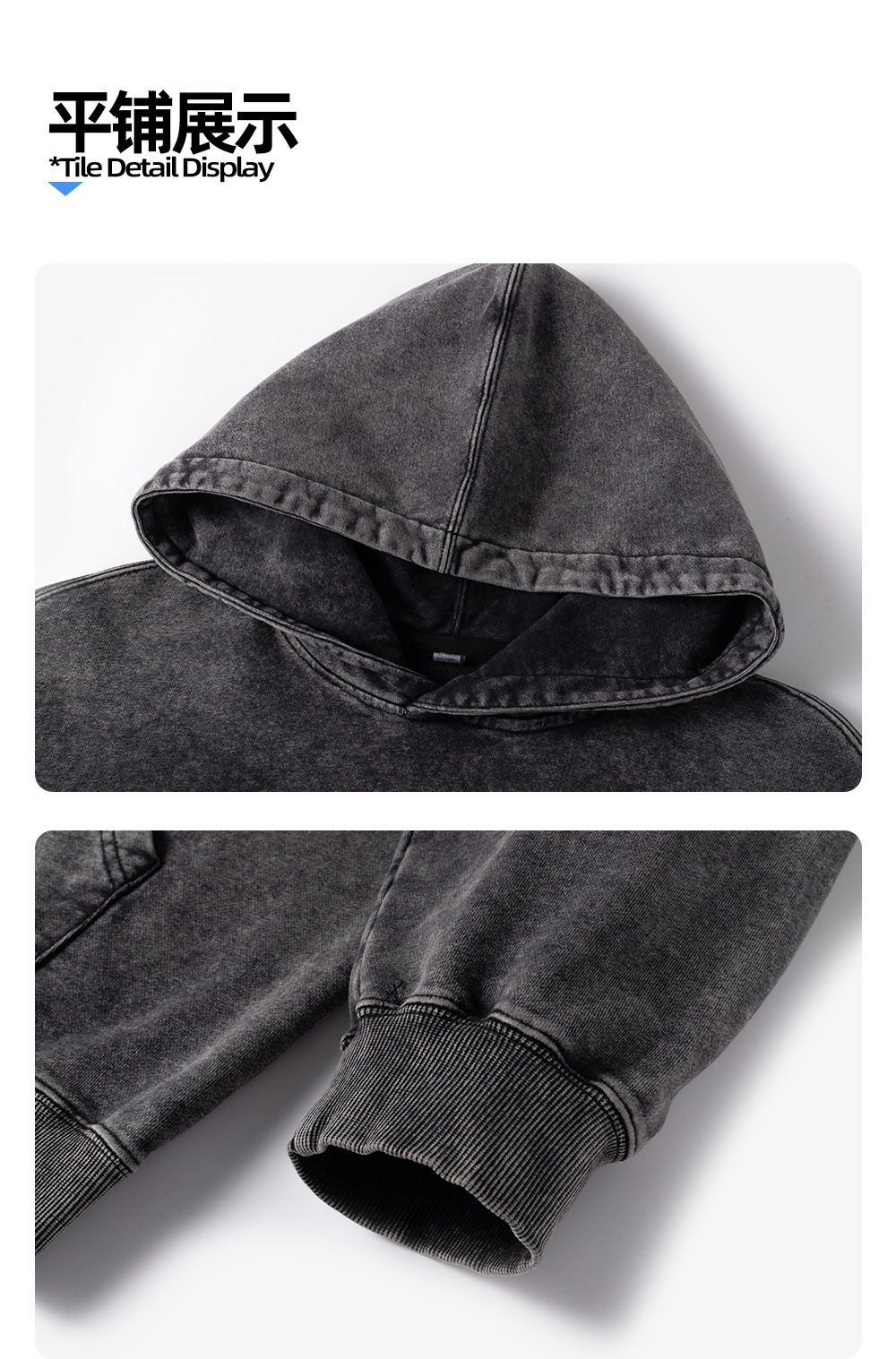 跨境外贸重磅纯棉水洗做旧卫衣潮牌休闲复古石磨炒雪花男装青少年
