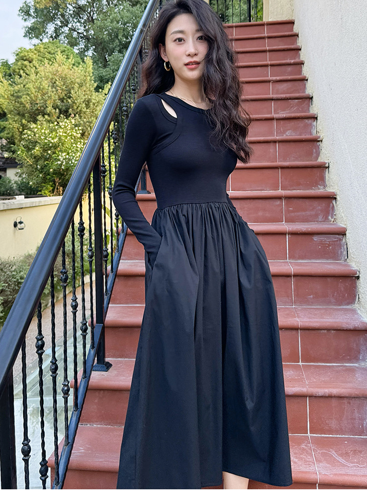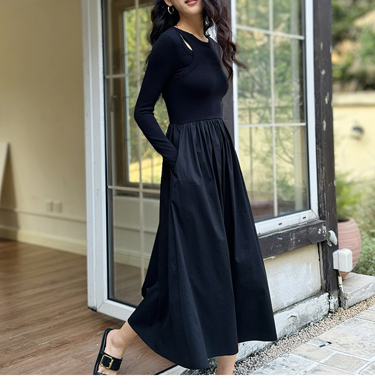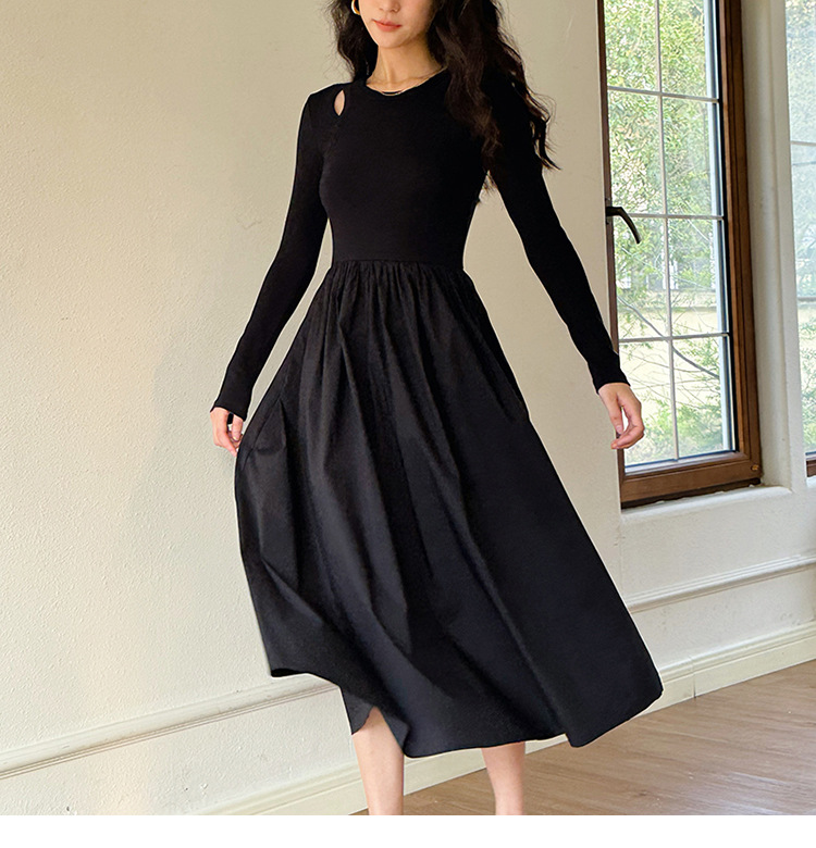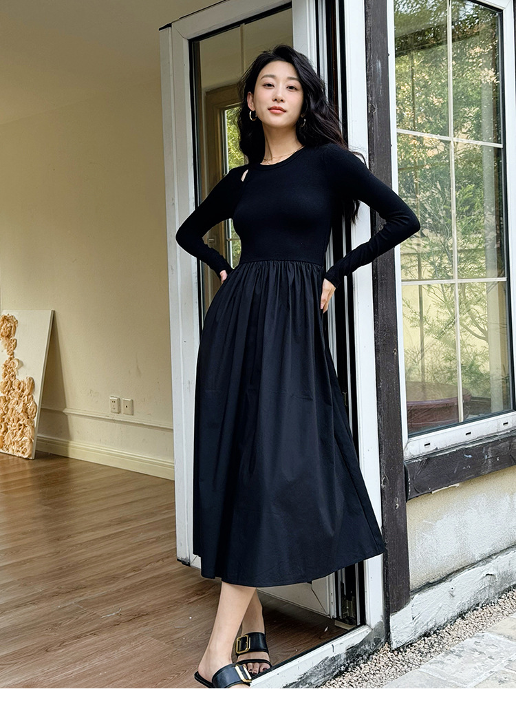 女装新款显瘦打底连衣裙中长款韩国女装套头小黑裙修身针织裙
