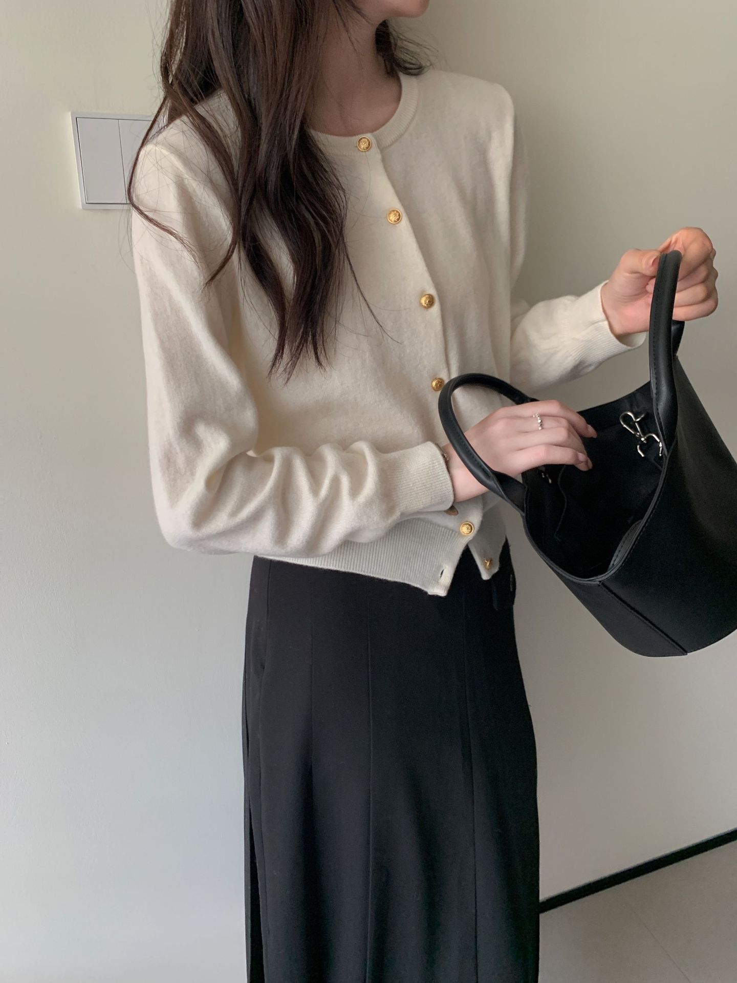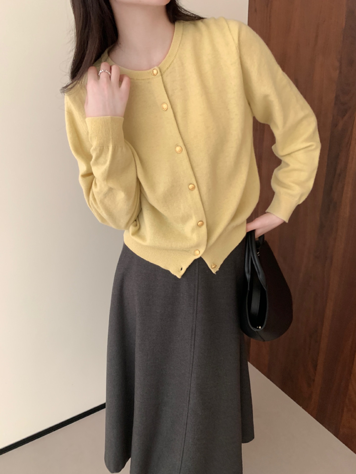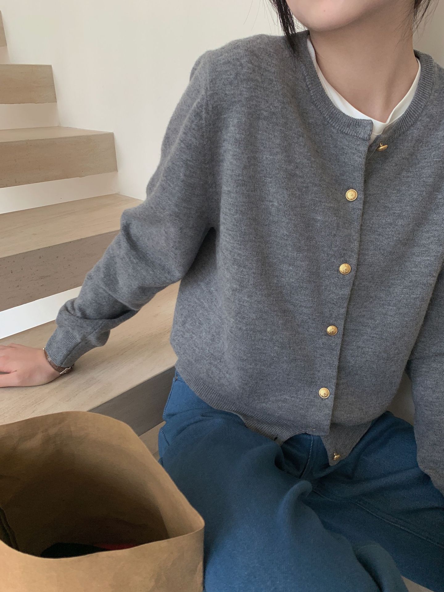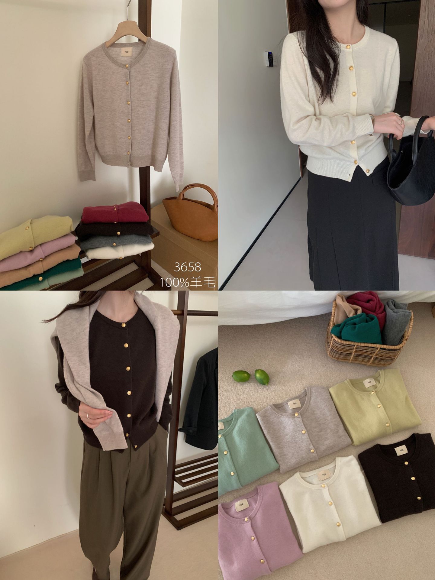 100%羊毛韩系圆领纯色小金扣长袖针织衫时尚百搭女装egg毛衣