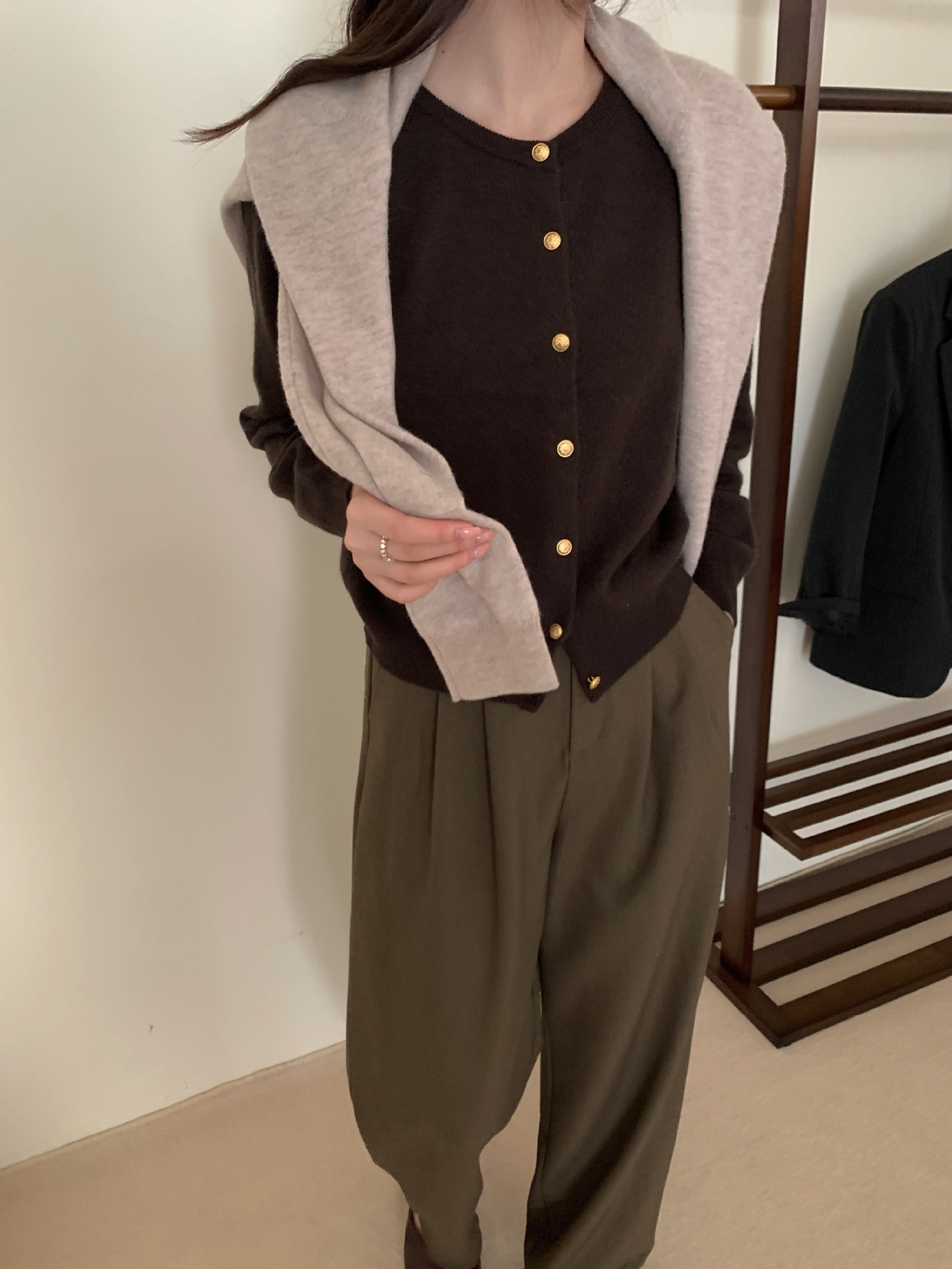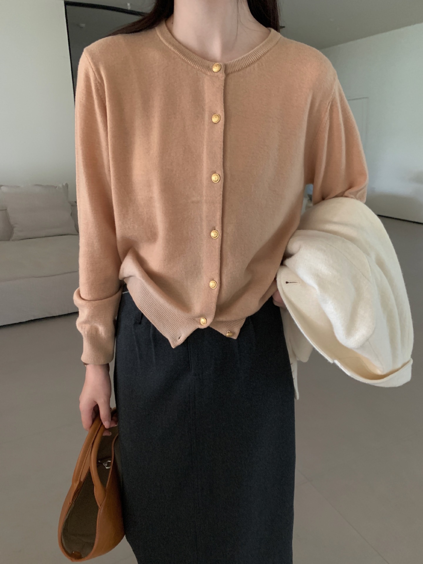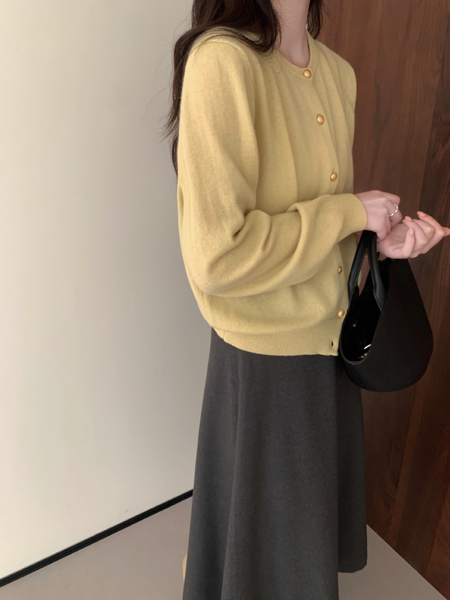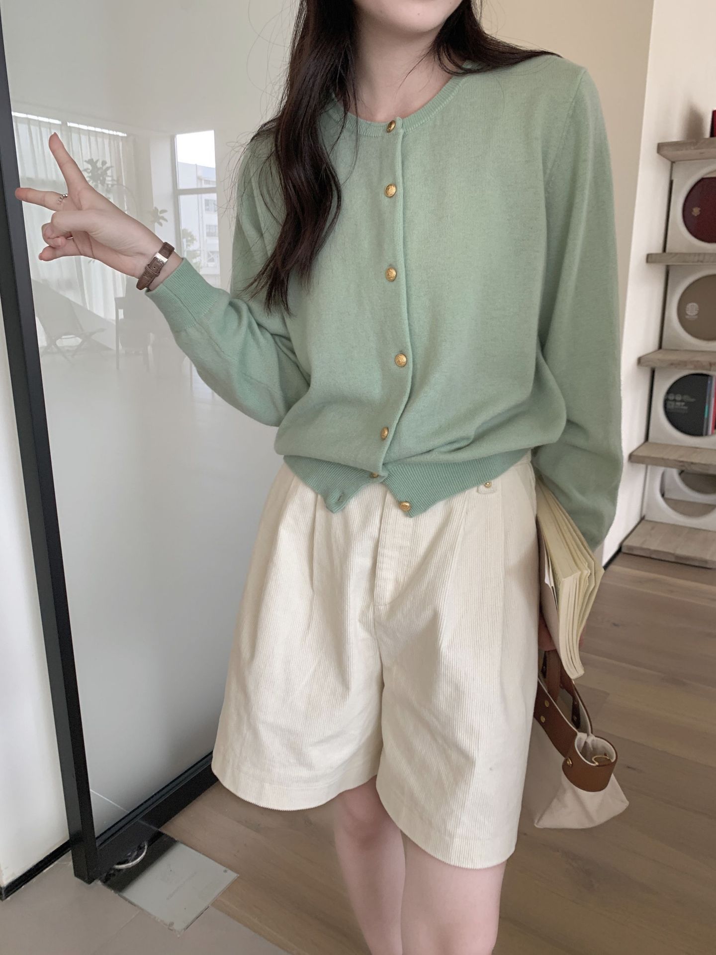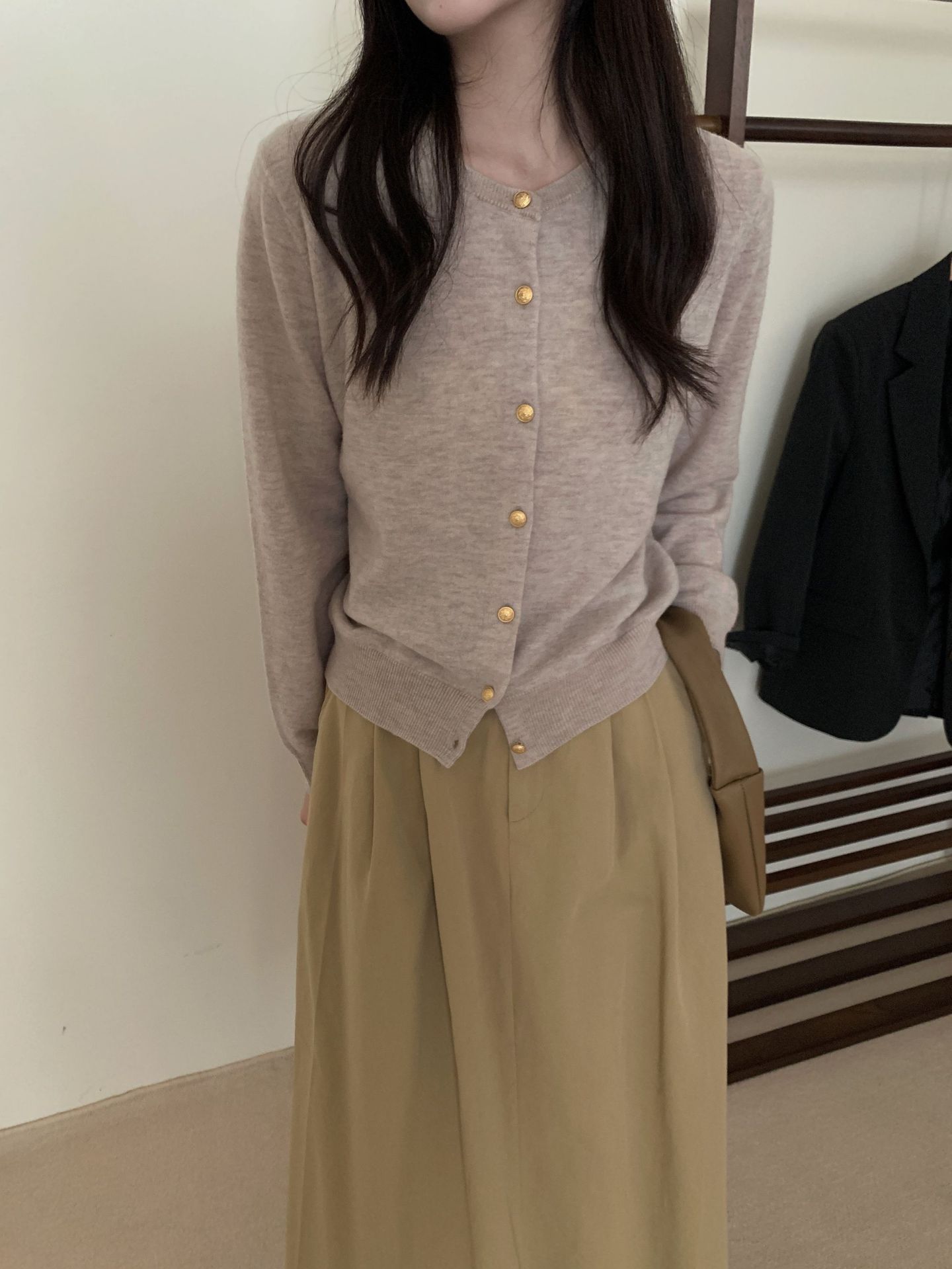 100%羊毛韩系圆领纯色小金扣长袖针织衫时尚百搭女装egg毛衣