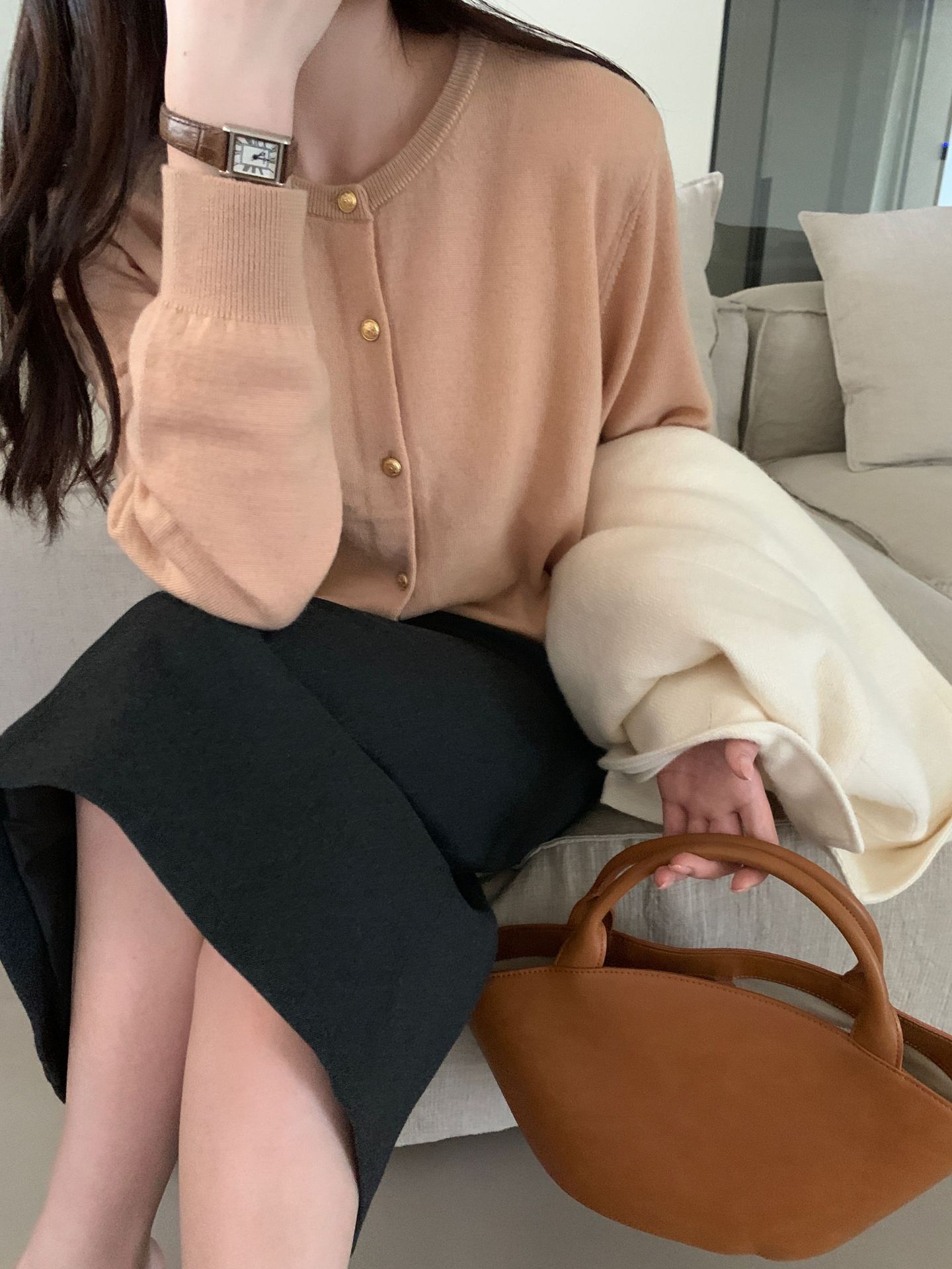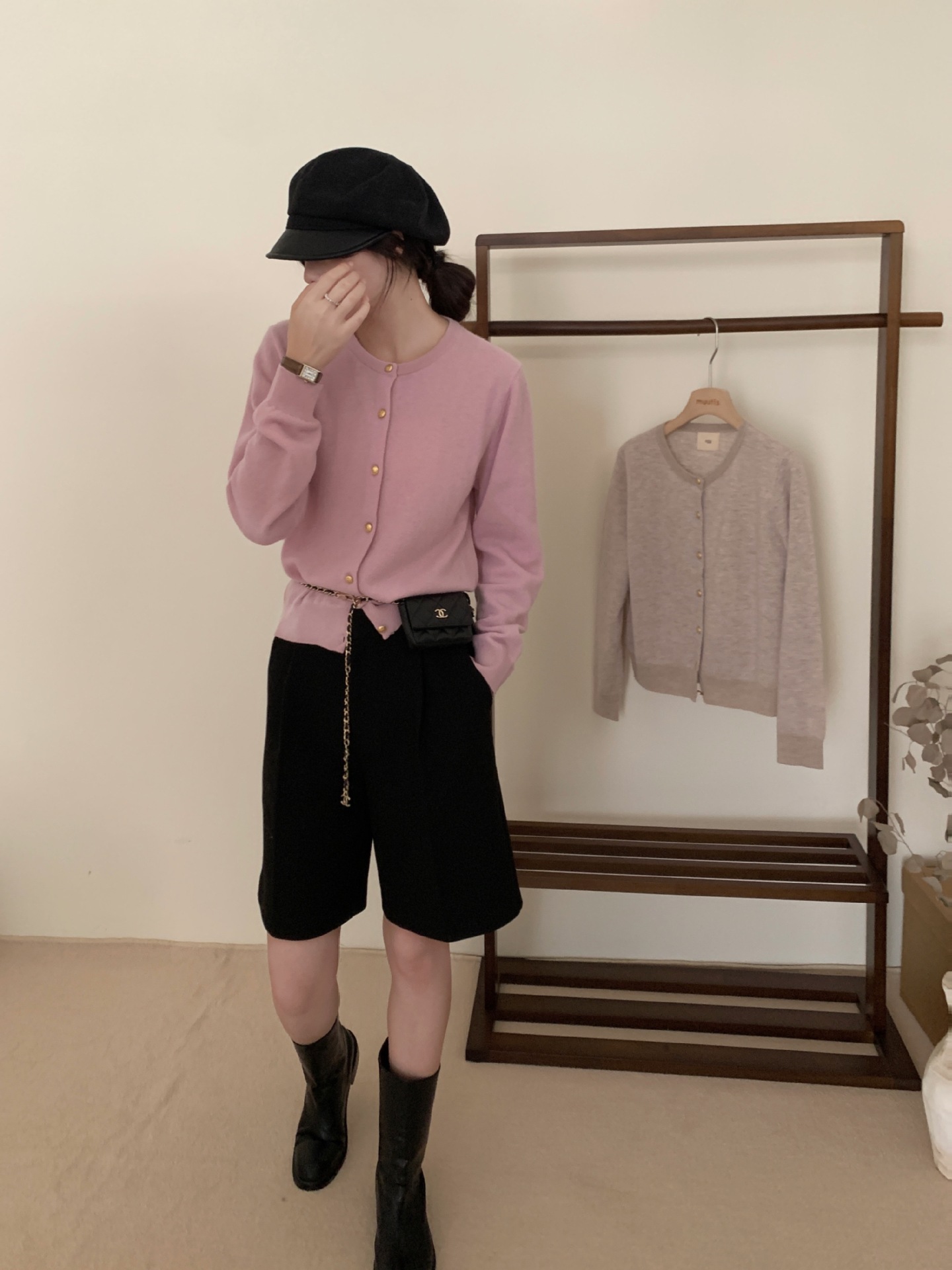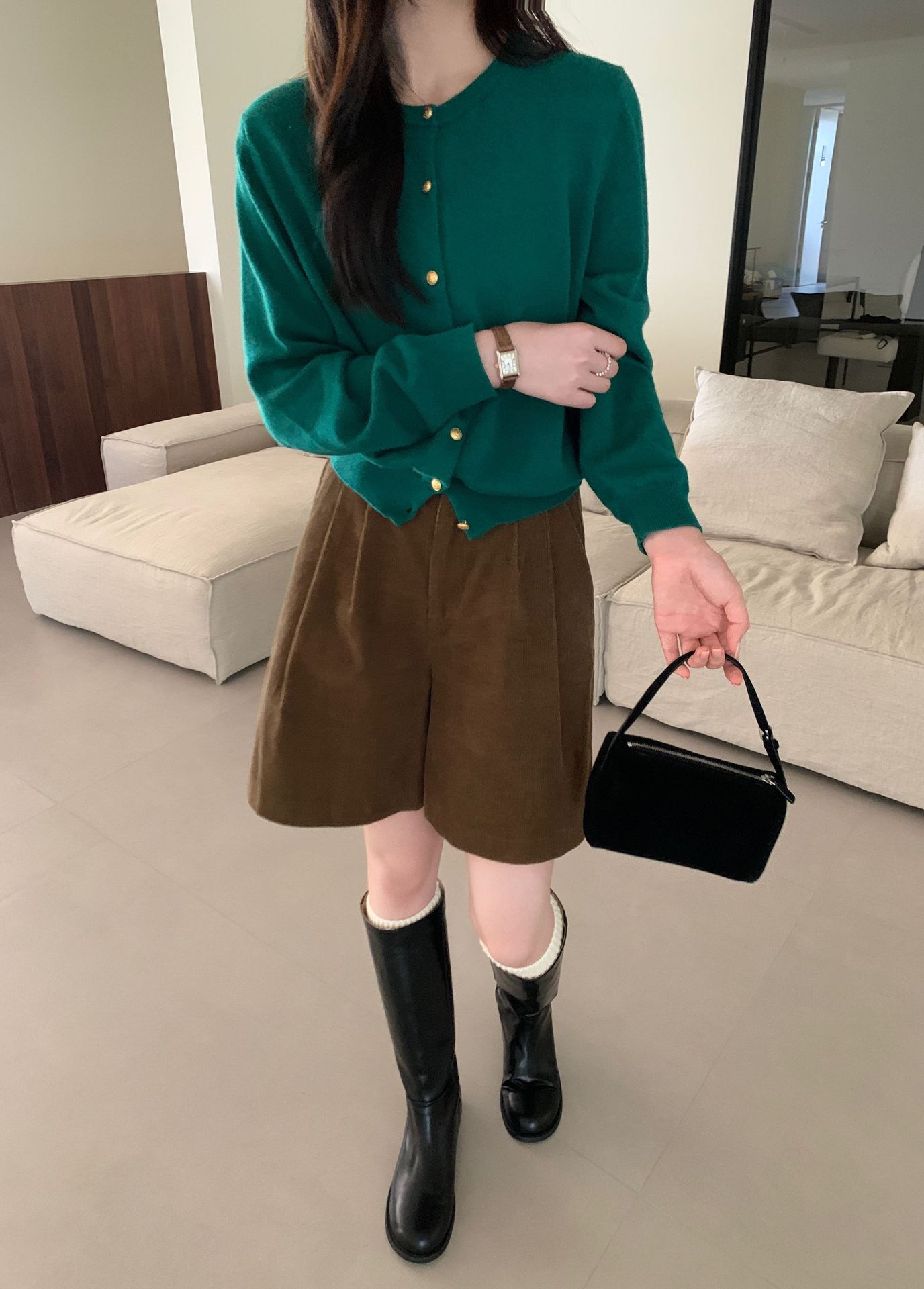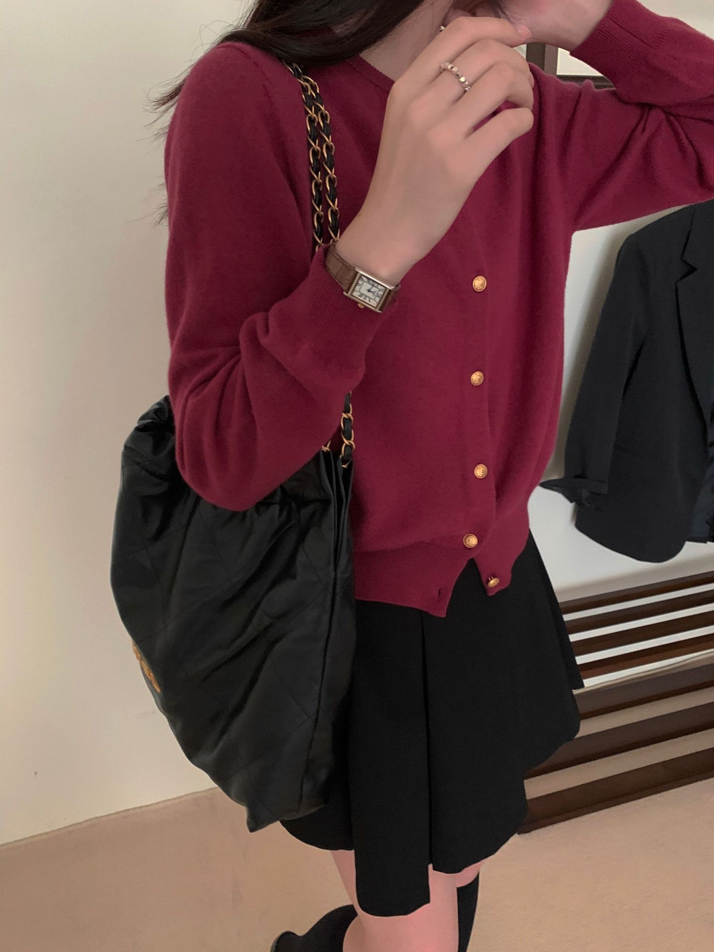 100%羊毛韩系圆领纯色小金扣长袖针织衫时尚百搭女装egg毛衣