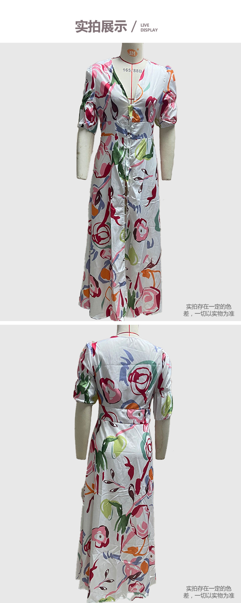新款欧美亚马逊女装沙滩连衣裙修身大摆四面弹印花长裙