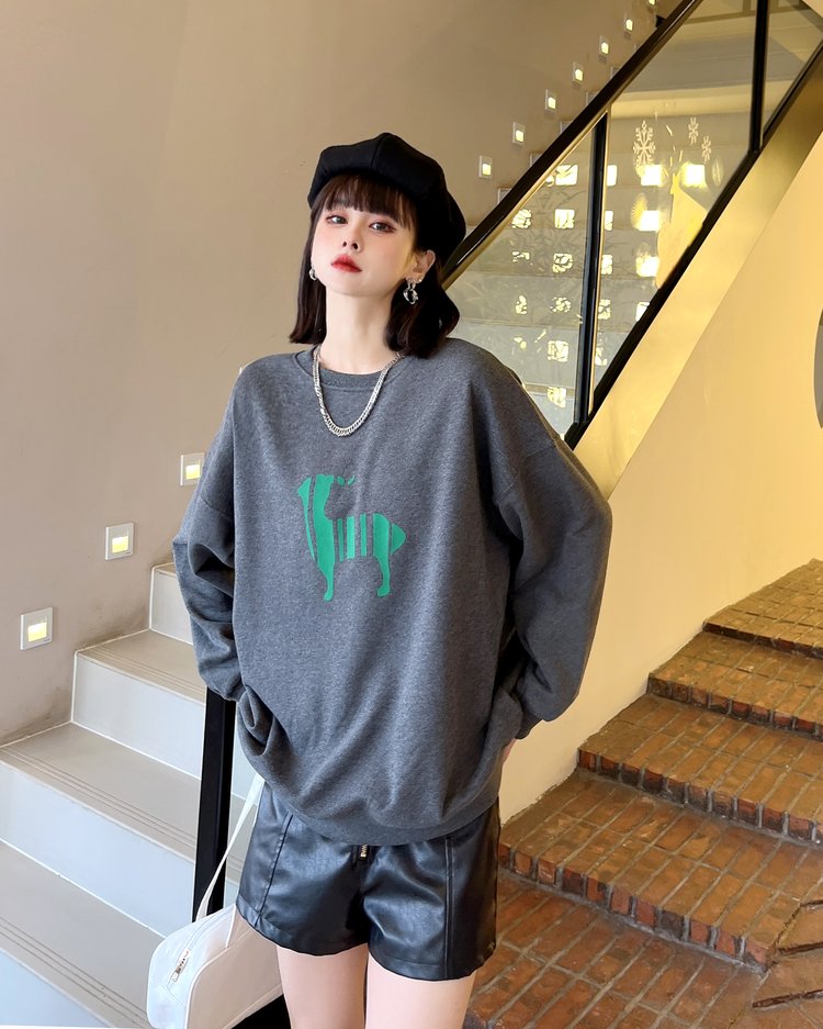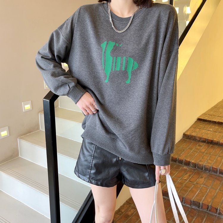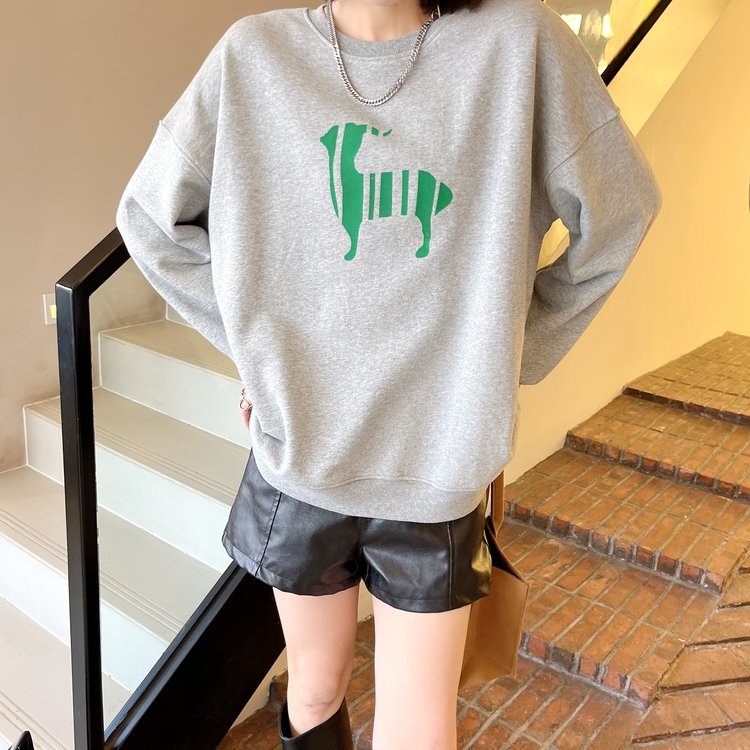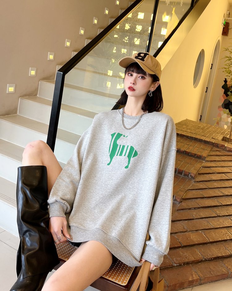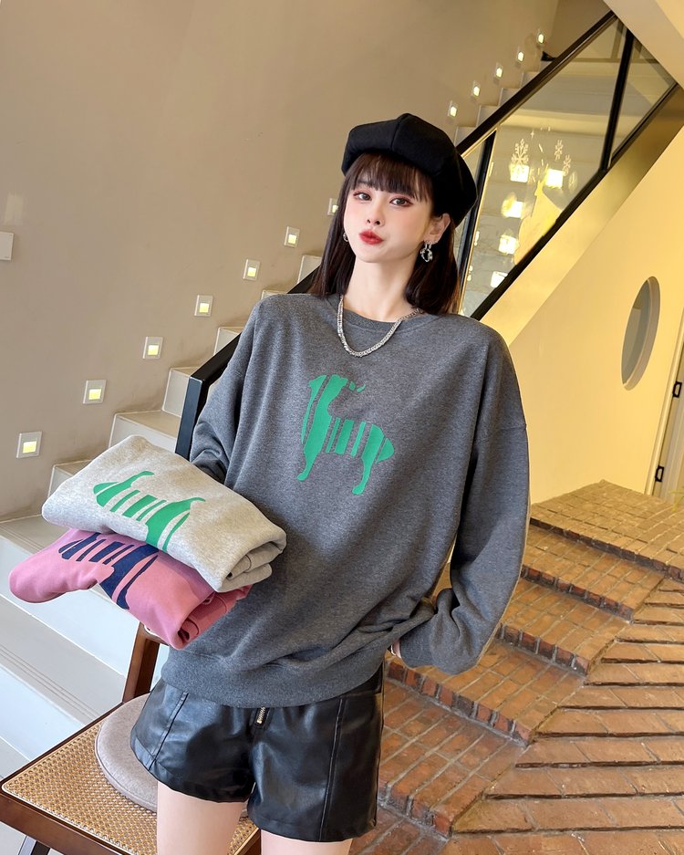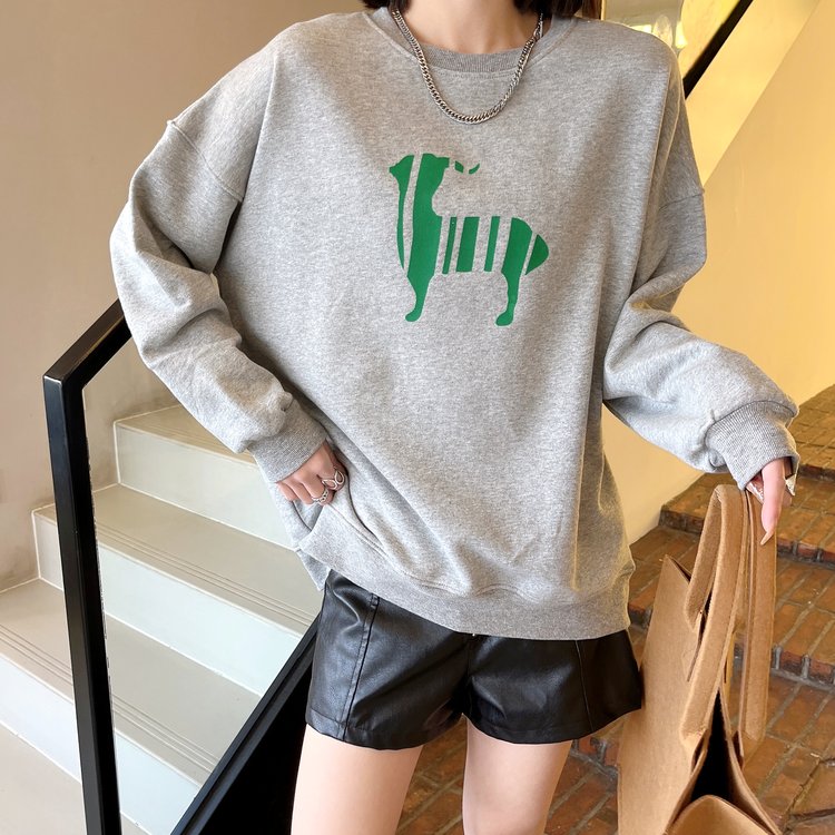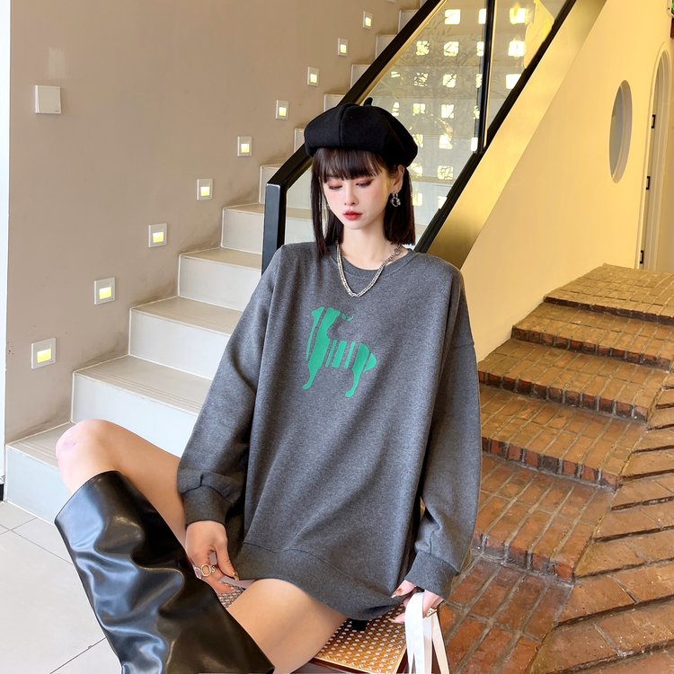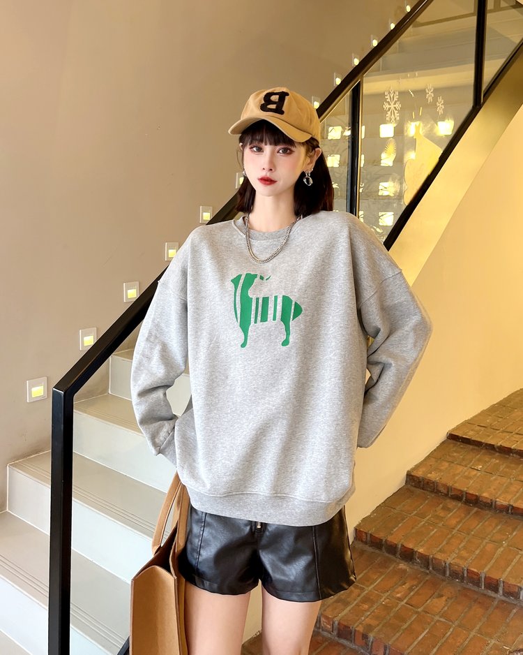 韩版套头卫衣女薄款植绒宽松长袖女装